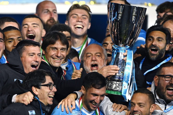那不勒斯对孔蒂充满热情,德劳伦蒂斯的下一个目标是开启与这位教头的合作周期。孔蒂在不到一个半赛季的时间里,已经为那不勒斯带来了两项冠军。主席在利雅得之夜的言辞充满激情,仿佛是对孔蒂的正式任命:“自1990年以后,我们再也没有见过如此的双冠成就,只有马拉多纳做到过。”